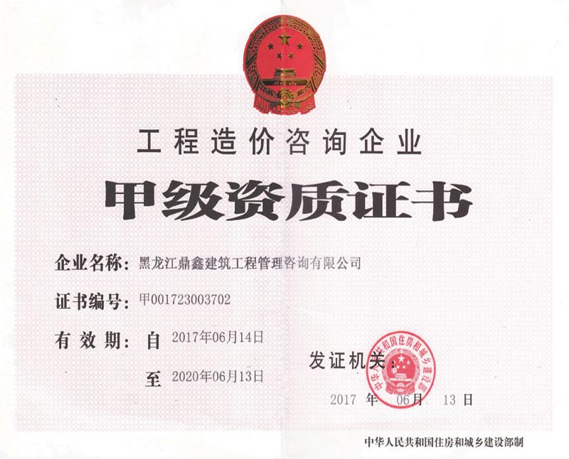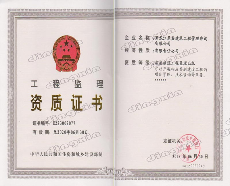 黑龍江鼎鑫建筑工程管理咨詢有限公司成立于2005年,注冊資金400萬元。具備中華人民共和國住房和城鄉建設部批準的工程招標代理機構資格、中華人民共和國財政部批準的政府采購招標代理機構資格、黑龍江省商務廳批準的機電產品國際招標代理機構資格、中華人民共和國住房和城鄉建設部批準的工程造價咨詢甲級資質、黑龍江省住房和城鄉建設廳批準的房屋建筑工程監(jiān)理乙級(市政公用工程監(jiān)理乙級資質)。主要從事建設工程及政府采購招標、造價咨詢、工程監(jiān)理、項目管理等業(yè)務。